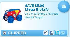 Print and take this coupon with you so that you can save $5.00 on a Mega Bloks wagon!   I am looking to get this for my 2 year old because my other two have destroyed our other one!