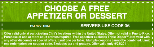 PLUS, take your Free Chips and Queso Coupon from Joining the Chili’s Coupon Club and get BOTH free!