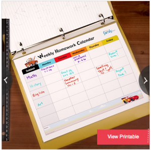 Free Printable homework calendar