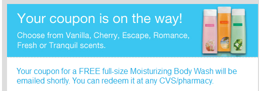 Stop by the Minute Clinic Facebook Page, LIKE them, enter your email and they will email you a coupon for the FREE bodywash!