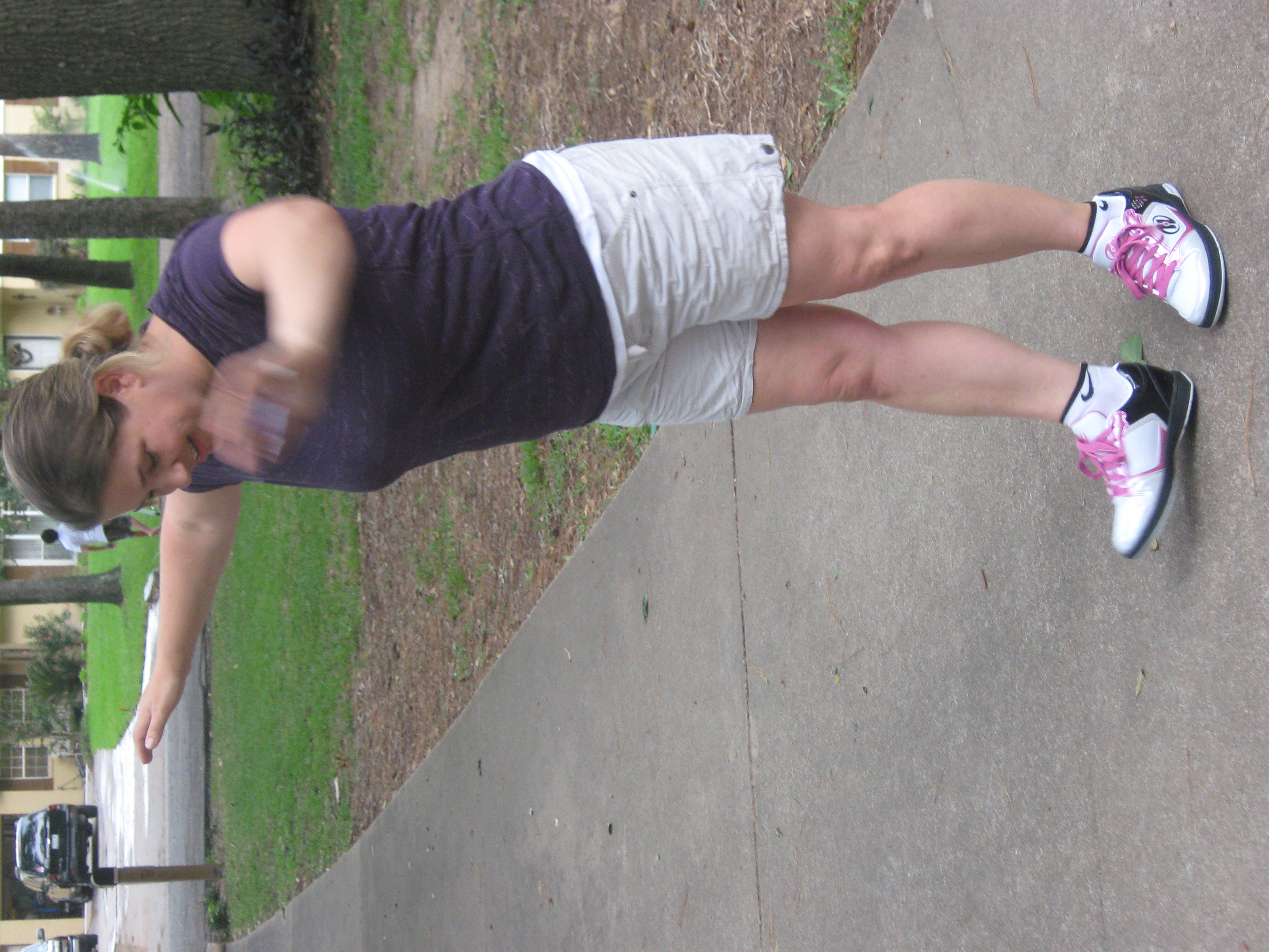 I am not brave enough to show you a video of my learning how to use these, but I finally got my husband to come out and take some pictures for me. Notice my elegance and grace. HEY! I did not fall on my keyster once!