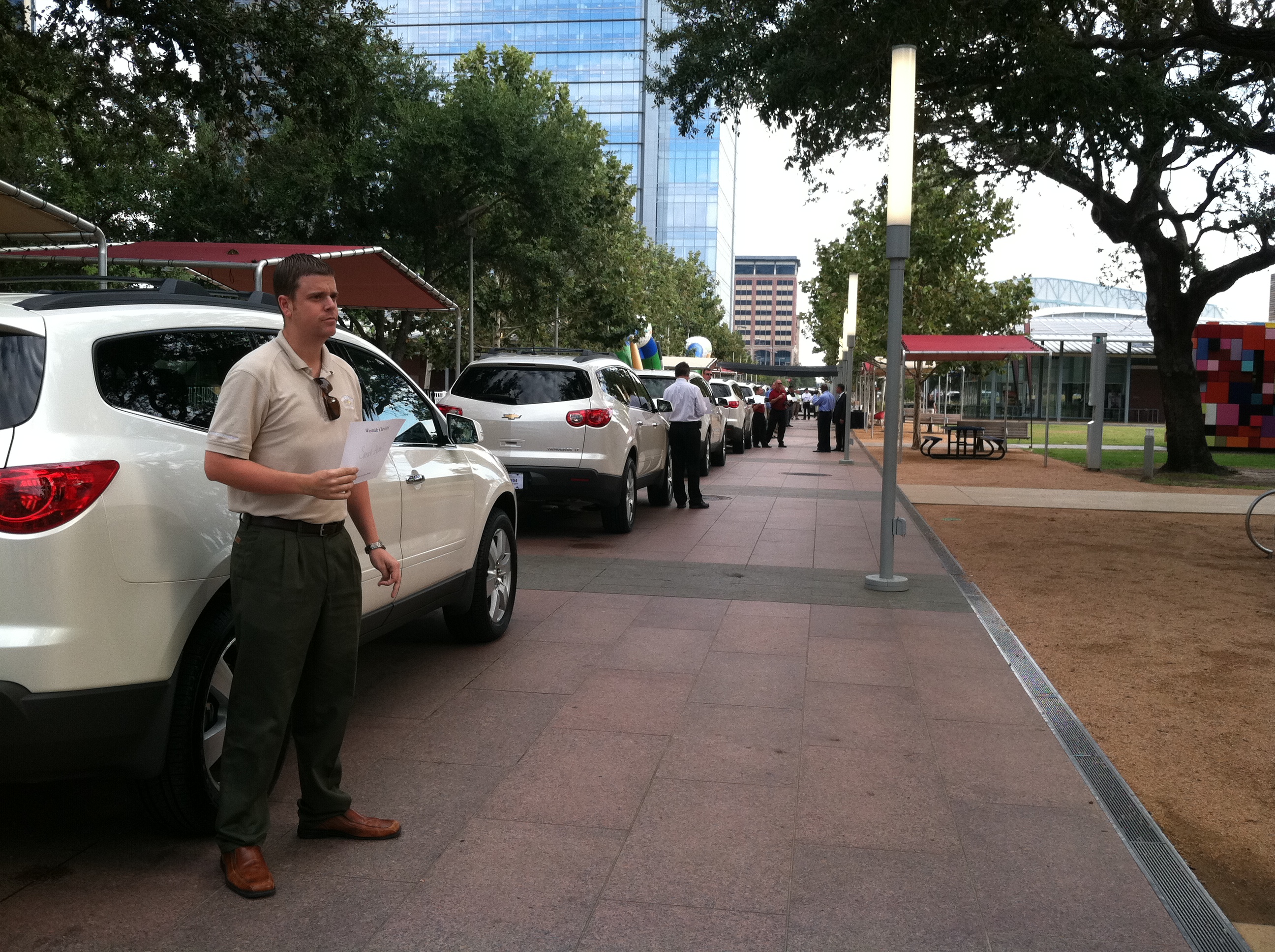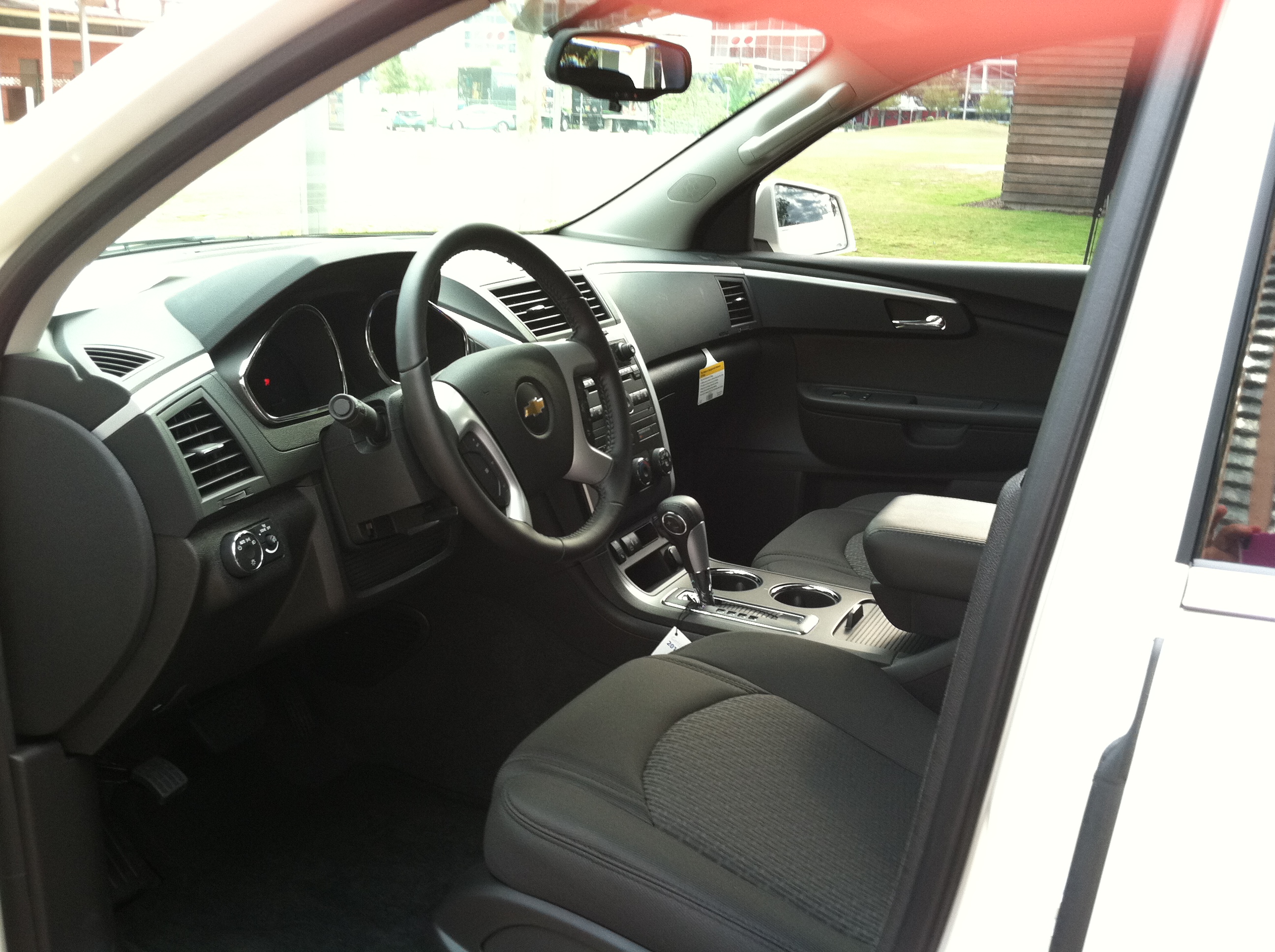 Almost a week ago, I was TRILLED to pick up a 2012 Chevrolet Traverse White Diamond Crossover SUV to test drive for Chevy for two weeks. I’ll admit that I was a little nervous about its size. It is one of the perks to being a Houston Chevy Girl on the Go! I drive a minivan that easily fits three carseats, strollers, groceries and more. So I was concerned, frankly, that we would not fit!